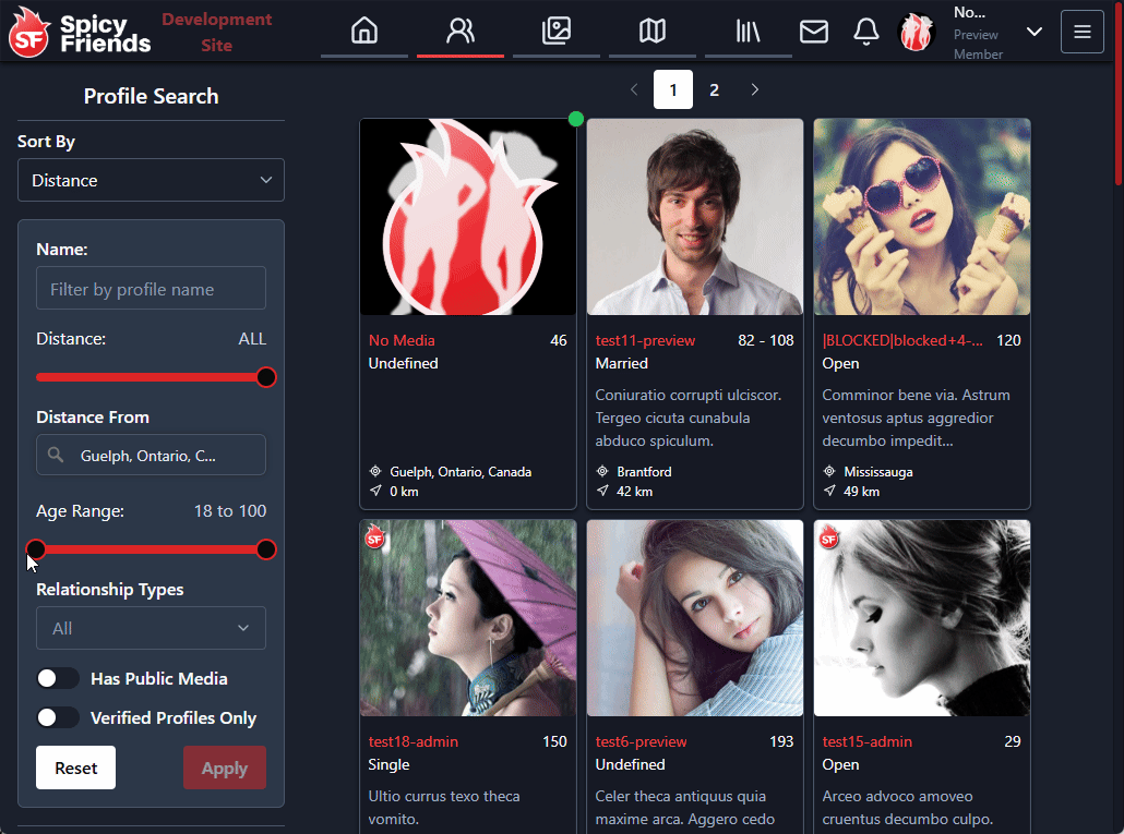 The profile search page now includes a filter to show only profiles with public media. When enabled, this filter will hide profiles that don't have any public media content.