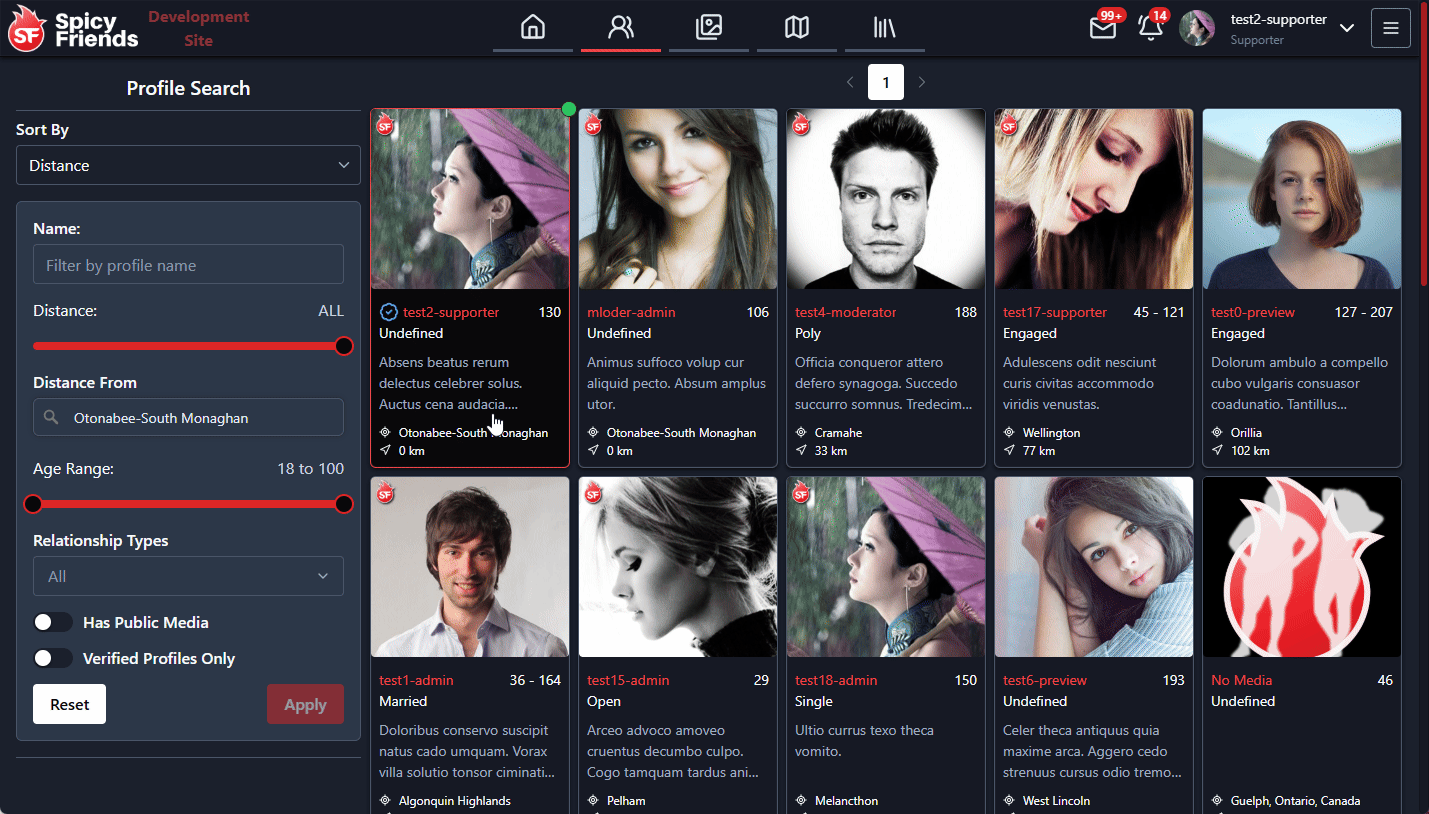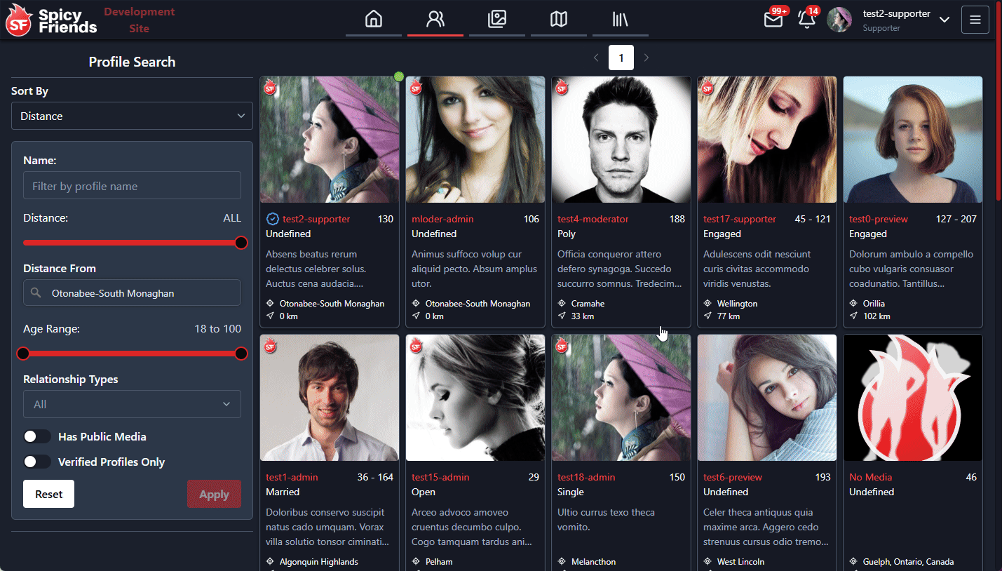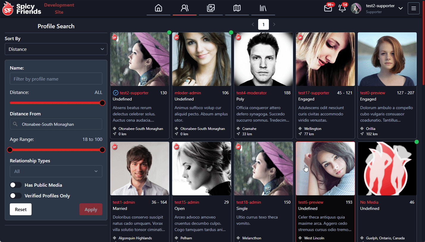 The profile search page now includes a filter to show only verified profiles. When enabled, this filter will hide profiles that are not verified.