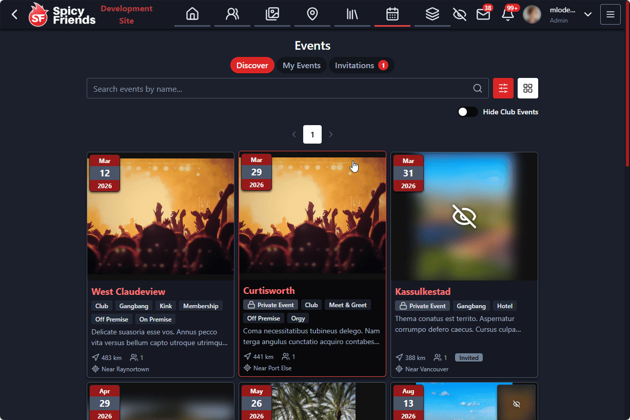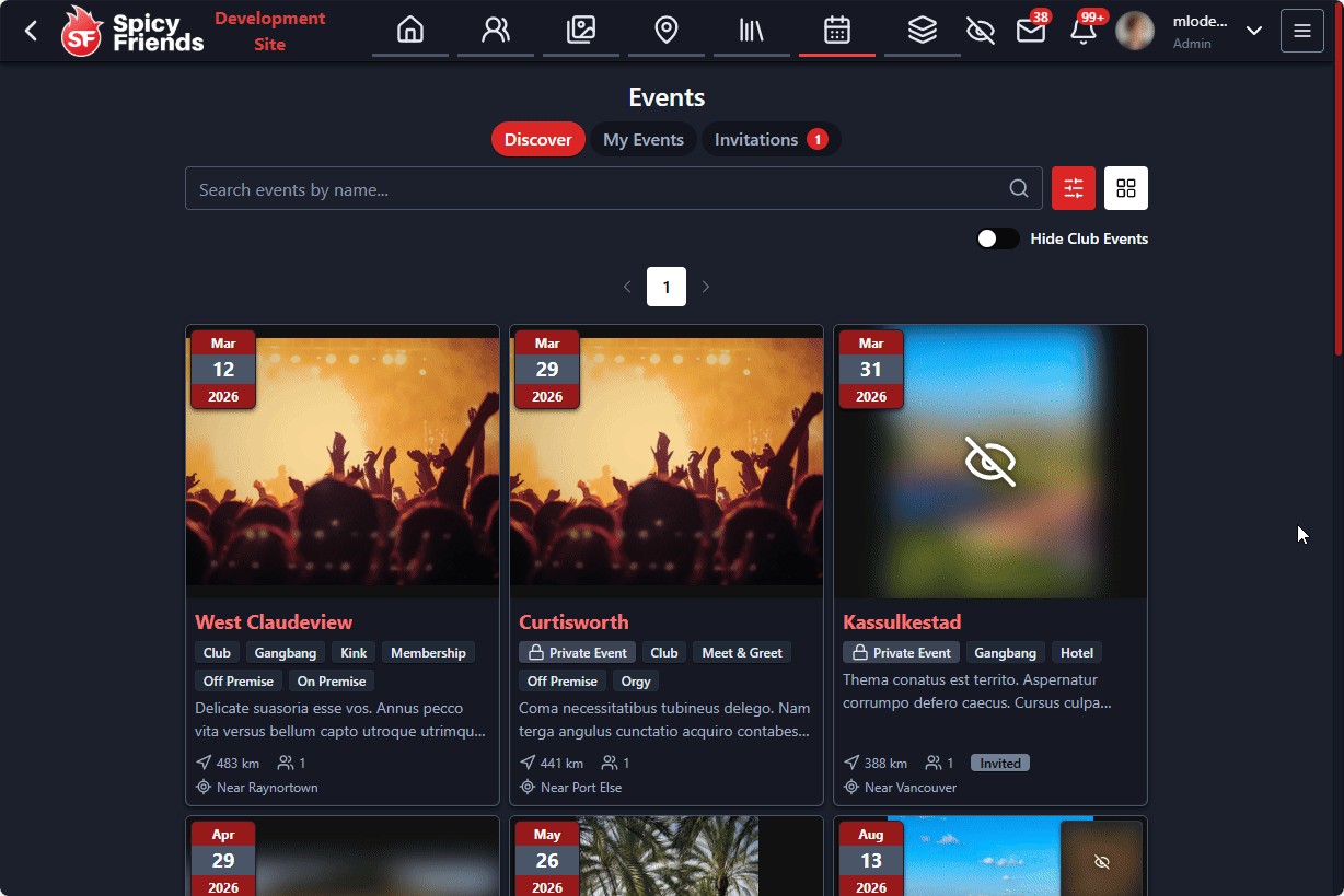 - New Invited Events Page