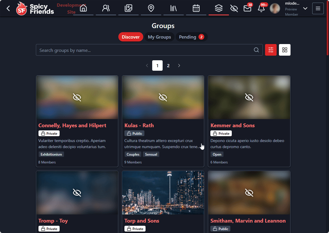 - Group categories - Groups are organized by categories like hobbies, sexual interests, and more